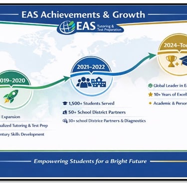 Esoteric Academic Solutions (EAS) began with a simple mission: to provide personalized academic support that helps students truly thrive. From the start, we recognized the importance of tailoring our approach to each student's unique needs. What started as a focused tutoring service quickly became something bigger—offering academic tutoring, elite test preparation, and college admissions consulting. Over the years, we have continuously evolved our services to keep pace with the changing educational landscape, always striving to provide the best possible support for our students.