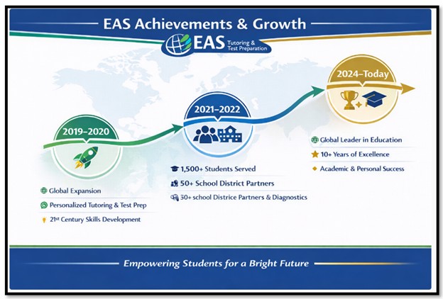 Today, with over a decade of experience, EAS serves more than 2500 students and school districts globally. Our unwavering commitment to providing top-notch academic support and guiding students through pivotal years has remained the same. We're here to help every student we work with achieve their full potential, and we couldn't be more proud of the success stories we've helped create.